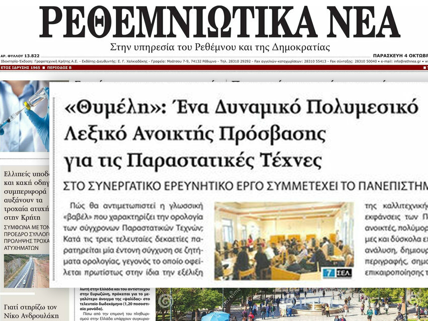 Στο συνεργατικό ερευνητικό έργο «Θυμέλη» συμμετέχει το Πανεπιστήμιο Κρήτης