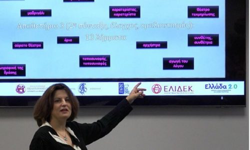 Με επιτυχία πραγματοποιήθηκε την Παρασκευή 10 Οκτωβρίου, στην αίθουσα «Ίρις» της Πανεπιστημιακής Λέσχης του ΕΚΠΑ, η τρίτη συνάντηση ολομέλειας του ερευνητικού έργου «Θυμέλη: Ένα Δυναμικό Πολυμεσικό Λεξικό Ανοικτής Πρόσβασης για τις Παραστατικές Τέχνες» που υλοποιούν φοιτητές από το Ναύπλιο.