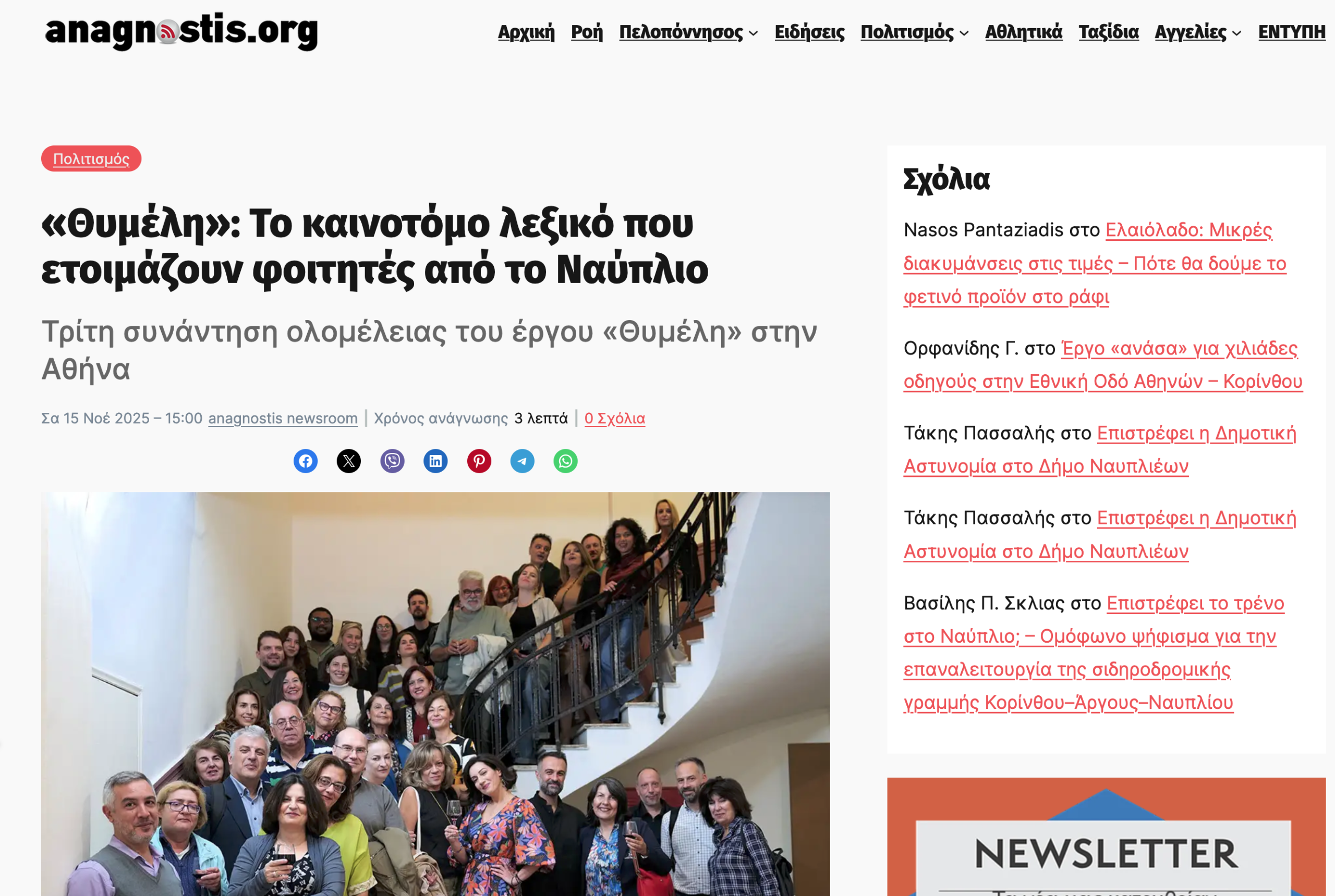 «Θυμέλη»: Το καινοτόμο λεξικό που ετοιμάζουν φοιτητές από το Ναύπλιο